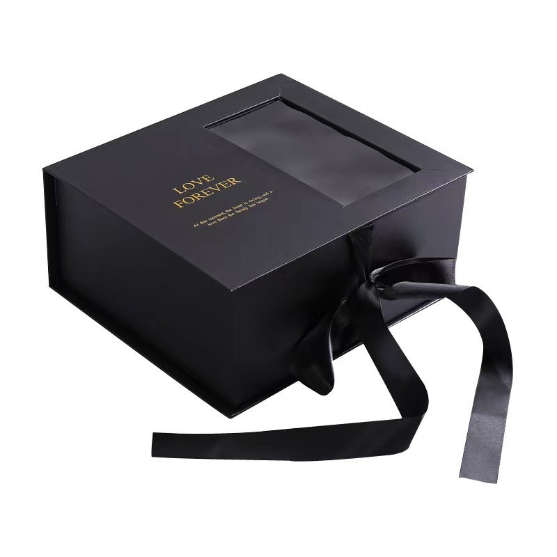 Envase de papel de regalo rosa con caja de flores con ventana de PVC |