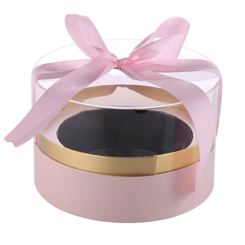 Embalaje de Bouquet Regalo redondo PVC transparente Caja de flores cilíndrica para floresCon cinta |
