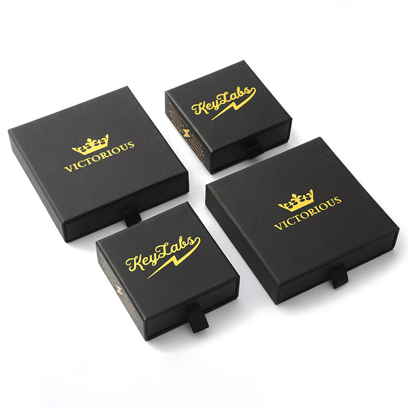 Papel negro grueso conjunto completo anillo de oreja pulsera colgante collar de embalaje cajón de regalo cajas de joyería deslizante personalizada |